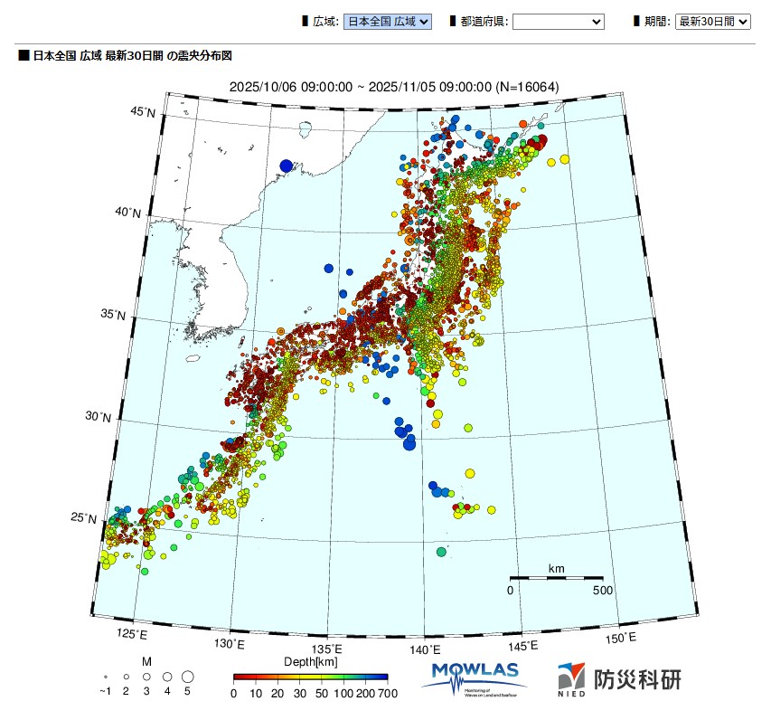 例えば「最新24時間の震源マップ」では、過去24時間に日本列島で発生した地震が、地図上に大きさや深さ別にプロットされます。これを見ると、私たちが気づかないような小さな地震(微小地震)が、いかに日本中で頻繁に発生しているかが一目瞭然です。
