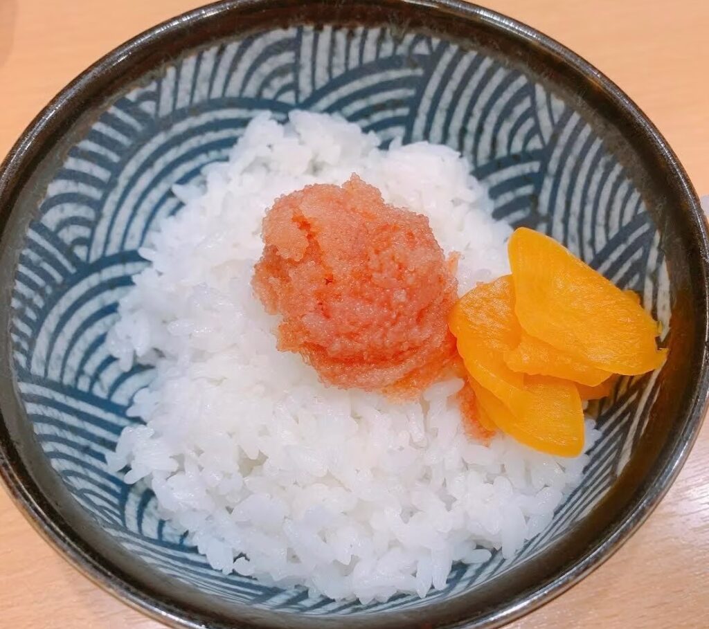 博多ラーメンを語る上で欠かせないのが、白米の名脇役「明太子ごはん」です。ほかほかのご飯の上に、たっぷりの明太子と刻み海苔。これだけでも十分に美味しいのですが、その真価はラーメンスープと出会った時に発揮されます。