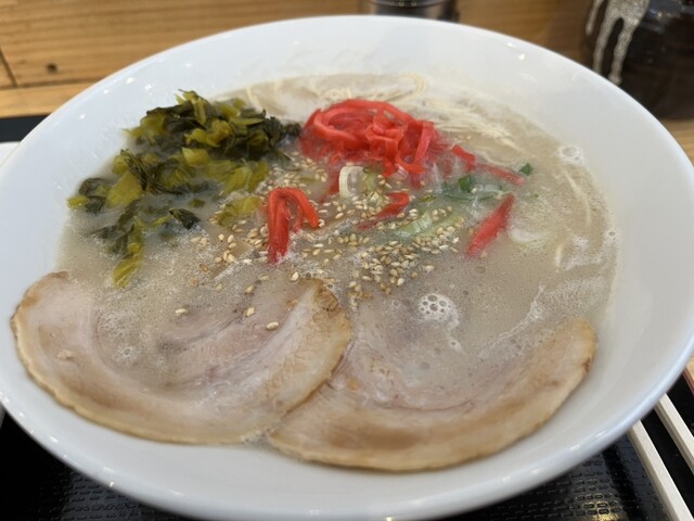そして、カウンターに備え付けられた辛子高菜と紅生姜。これを途中で加える「味変」こそが、豚骨ラーメンの醍醐味。キリッとした辛味と酸味が加わることで、スープの表情がガラリと変わり、最後の一滴まで飽きさせません。替え玉(別料金)をせずにはいられなくなる引力があります。