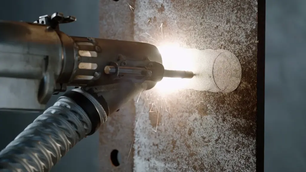 - 圧倒的にクリーン: 研削材を使わないため、二次産廃物(ゴミ)がほとんど出ません。発生する粉塵も、先端の集塵機で吸い取ってしまいます。