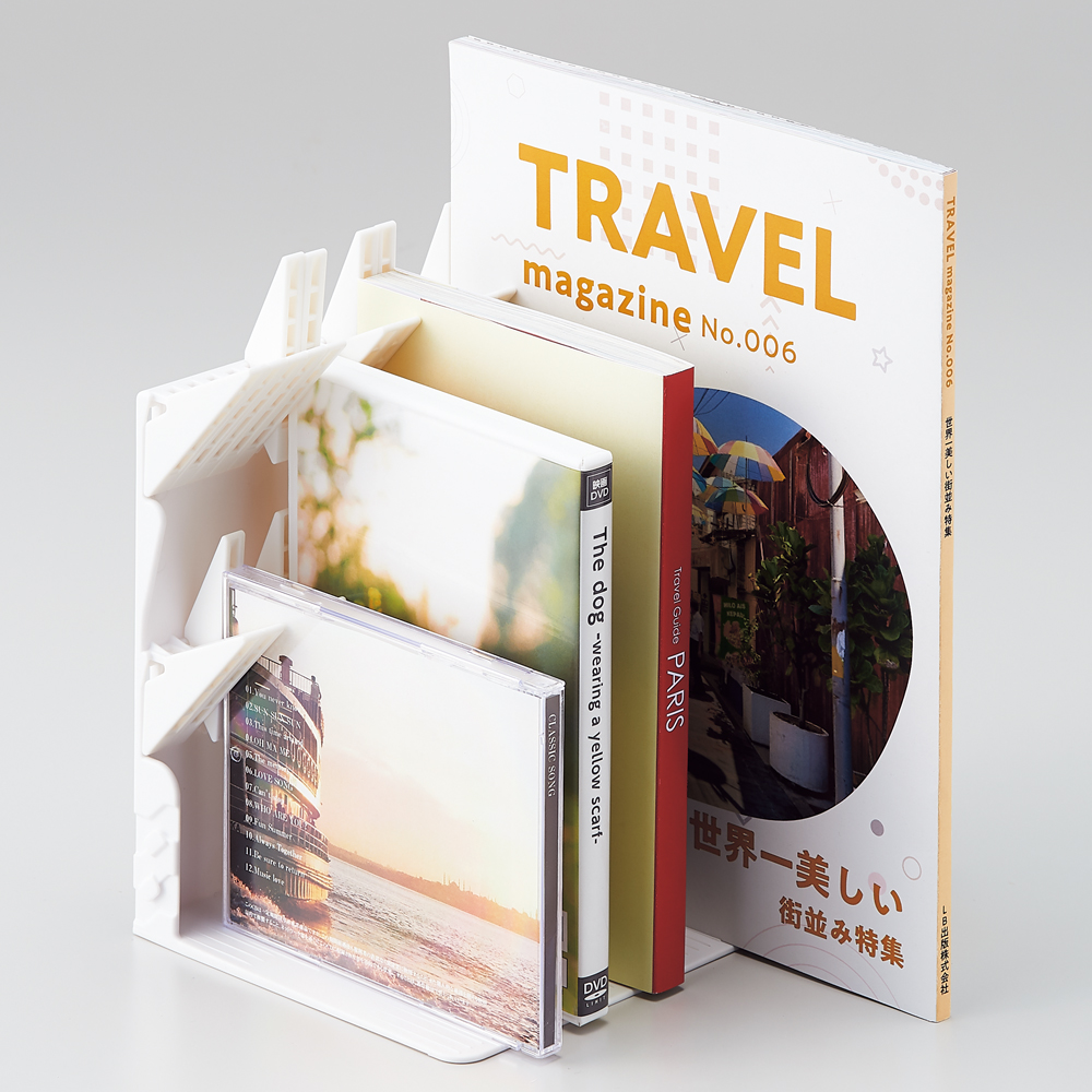 取材やリサーチが増えると、デスクはあっという間に参考書籍や資料の山に。特に困るのが、厚みやサイズがバラバラな本たちの「自立」です。