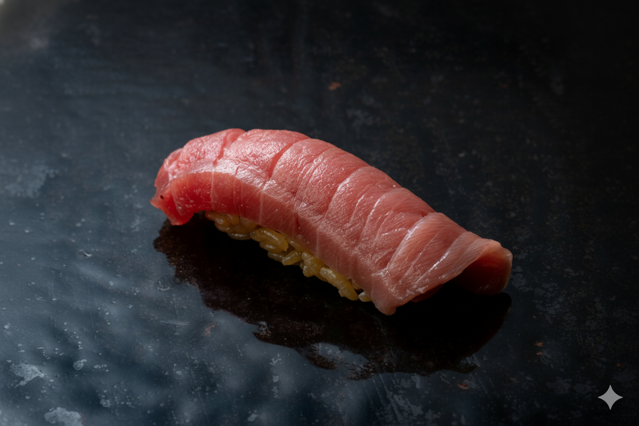 - マグロ(赤身・トロ)熟成によって旨味が凝縮された赤身は、深い鉄分と香りを湛えています。一方、トロは人肌のシャリの温度で脂がとろけ、甘美な余韻を残します。ネタの温度管理と、口の中でほろりと解けるシャリの「はらけ」の良さに、職人の技を感じずにはいられません。